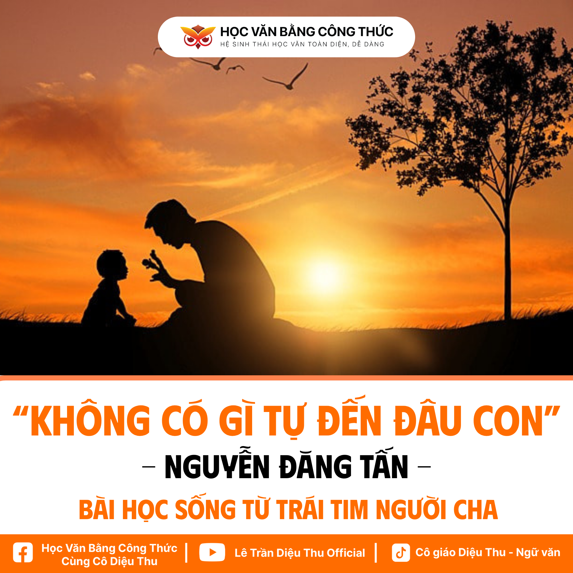🖋️ Trong cuộc đời mỗi con người, có lẽ không điều gì thiêng liêng và xúc động hơn những lời răn dạy giản dị nhưng chan chứa tình thương của cha mẹ. Đó không chỉ là những kinh nghiệm sống mà còn là ngọn đèn soi đường cho con trên hành trình trưởng thành. Bài thơ “Không có gì tự đến đâu con” của Nguyễn Đăng Tấn là một lời nhắn gửi thấm đẫm tình cha, vừa nghiêm khắc vừa ấm áp, dạy con hiểu rằng mọi thành quả, hạnh phúc hay ước mơ trong cuộc sống đều phải được đánh đổi bằng lao động, nghị lực và lòng kiên trì.